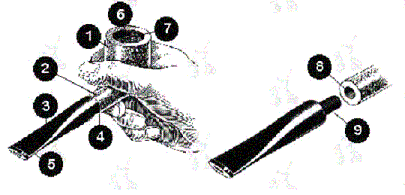 8. Dymový kanálik, kadiaľ sa ťahá dym z tabaku, cez nástavec, náustok až do úst